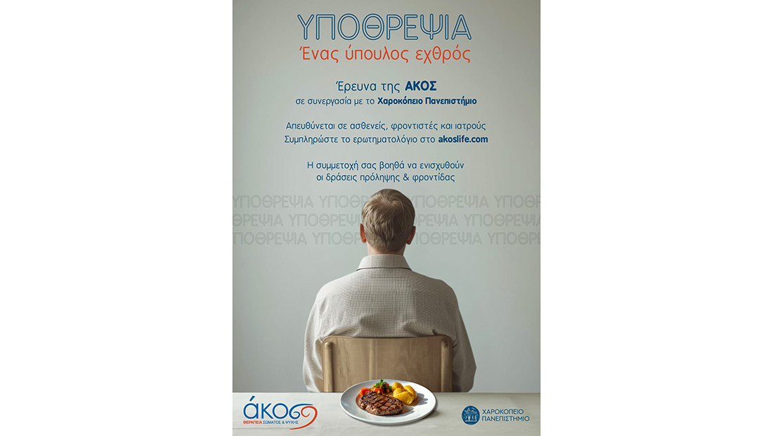 Έρευνα της ΑΚΟΣ για την υποθρεψία η οποία απειλεί την τρίτη ηλικία και τους ογκολογικούς ασθενείς διενεργείται σε συνεργασία με το Χαροκόπειο Πανεπιστήμιο και ιχνηλατεί τις στάσεις και τις αντιλήψεις ασθενών, των φροντιστών τους αλλά και των ογκολόγων ιατρών ή/και άλλων επιστημόνων υγείας αναφορικά με τη διατροφή των ασθενών. Η υποθρεψία αφορά ένα στα τρία άτομα άνω των 65 ετών, επηρεάζοντας δραματικά την ποιότητα ζωής τους. Εκδηλώνεται όταν ο οργανισμός αδυνατεί να καλύψει τις ανάγκες του σε θερμίδες και θρεπτικές ουσίες είτε γιατί δεν λαμβάνει επαρκή τροφή ενώ έχει αυξημένες ανάγκες είτε λόγω σημαντικής απώλειας θρεπτικών ουσιών που οφείλονται σε συνεχόμενους εμετούς ή διάρροια. Η πρόσληψη βάρους είναι διαδικασία χρονοβόρα, εξίσου δύσκολη με την απώλειά του.